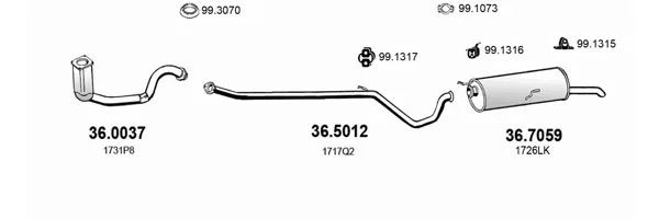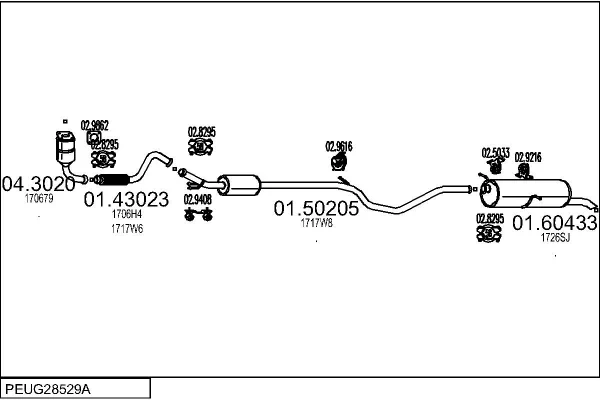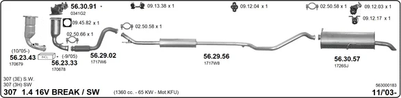 PEUGEOT 307 Break (3E) 1.4 16V - Výfukový systém - kompletní od 11/2003 do 7/2007, 1360 ccm, 65 kW, 88 hp, KFU (ET3J4), kombi