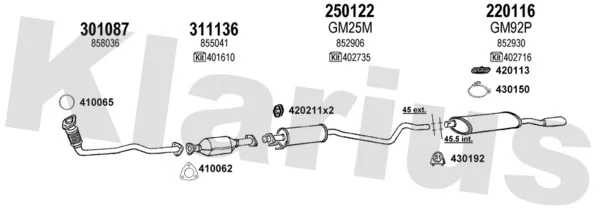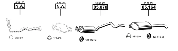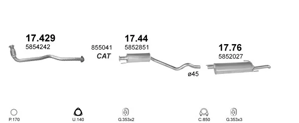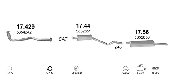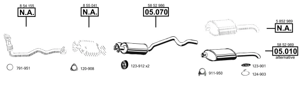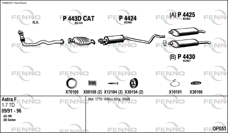 OPEL ASTRA F limuzína (T92) 1.7 TDS (F19, M19) - Výfukový systém - kompletní od 3/1992 do 9/1998, 1686 ccm, 60 kW, 82 hp, 17 DT, 17 TD, X 17 DT, limuzína
