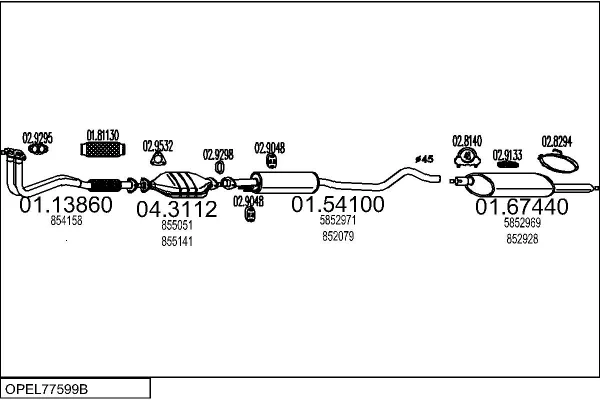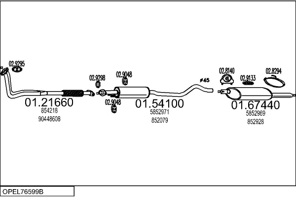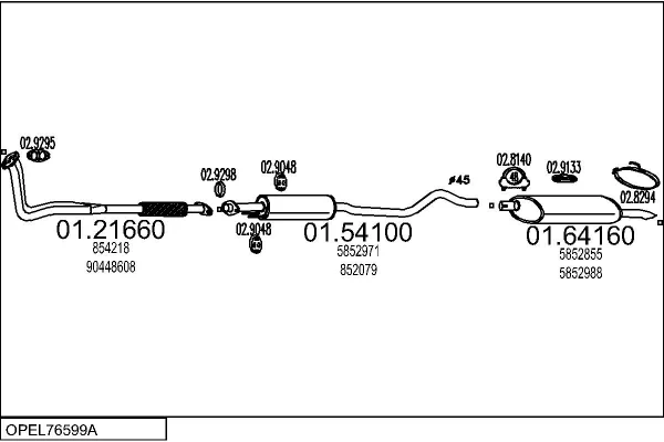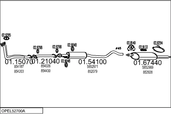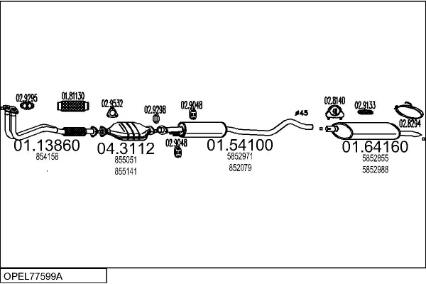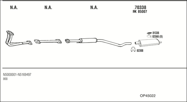 OPEL ASTRA F Šikmá zadní část (T92) 1.7 D (F08, M08, F68, M68) - Výfukový systém - kompletní od 12/1991 do 9/1992, 1699 ccm, 42 kW, 57 hp, 17 D, Šikmá zadní část