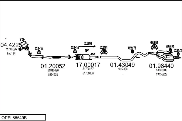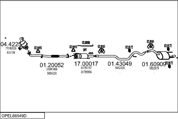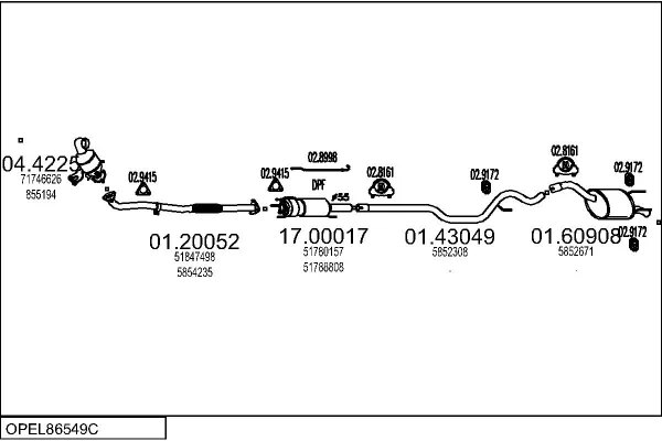 OPEL VECTRA C (Z02) 1.9 CDTI (F69) - Výfukový systém - kompletní od 4/2004 do 1/2009, 1910 ccm, 88 kW, 120 hp, Z 19 DT, limuzína