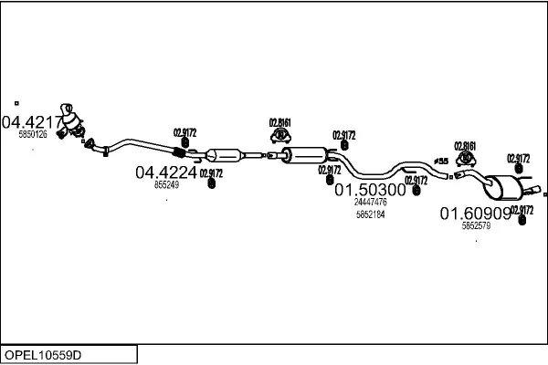 OPEL VECTRA C GTS (Z02) 1.9 CDTI (F68) - Výfukový systém - kompletní od 4/2004 do 8/2008, 1910 ccm, 110 kW, 150 hp, Z 19 DTH, Šikmá zadní část