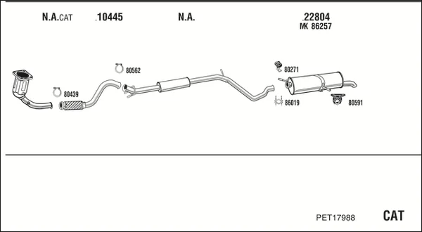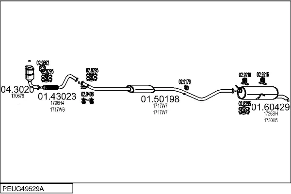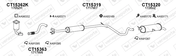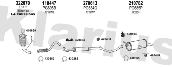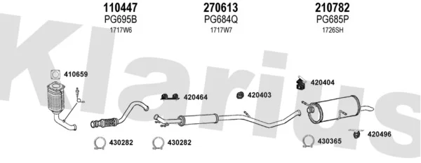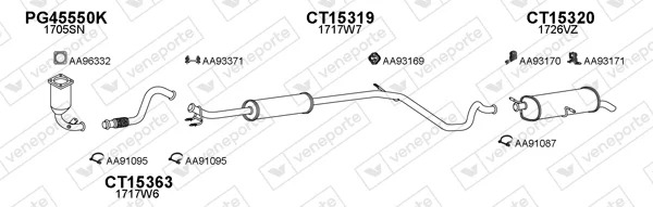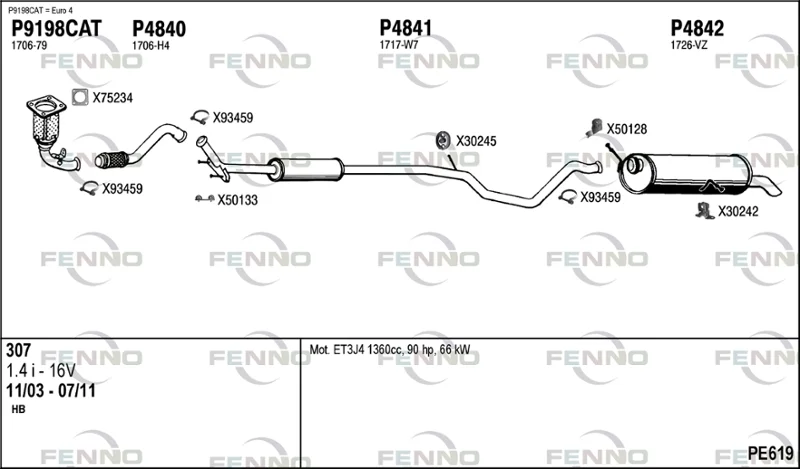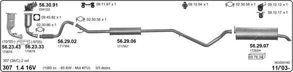 PEUGEOT 307 (3A/C) 1.4 16V - Výfukový systém - kompletní od 11/2003 do 7/2007, 1360 ccm, 65 kW, 88 hp, KFU (ET3J4), Šikmá zadní část