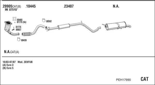 PEUGEOT 307 SW (3H) 1.4 16V - Výfukový systém - kompletní od 11/2003 do 7/2007, 1360 ccm, 65 kW, 88 hp, KFU (ET3J4), kombi