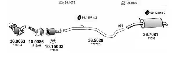 PEUGEOT 407 SW (6E_, 6D_) 2.0 HDi 135 - Výfukový systém - kompletní od 7/2004 do 12/2010, 1997 ccm, 100 kW, 136 hp, RHR (DW10BTED4), kombi