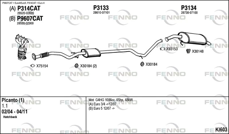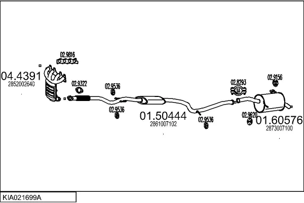 KIA PICANTO I (SA) 1.1 - Výfukový systém - kompletní od 4/2004 do 9/2011, 1086 ccm, 48 kW, 65 hp, G4HG, Šikmá zadní část