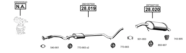 KIA PICANTO I (SA) 1.1 - Výfukový systém - kompletní od 4/2004 do 9/2011, 1086 ccm, 48 kW, 65 hp, G4HG, Šikmá zadní část