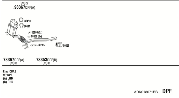 AUDI A3 Sportback (8PA) 2.0 TDI 16V - Výfukový systém - kompletní od 9/2004 do 3/2013, 1968 ccm, 103 kW, 140 hp, BKD, CBAB, CBEA, CFFB, CLJA, Šikmá zadní část