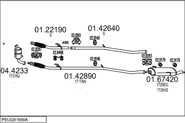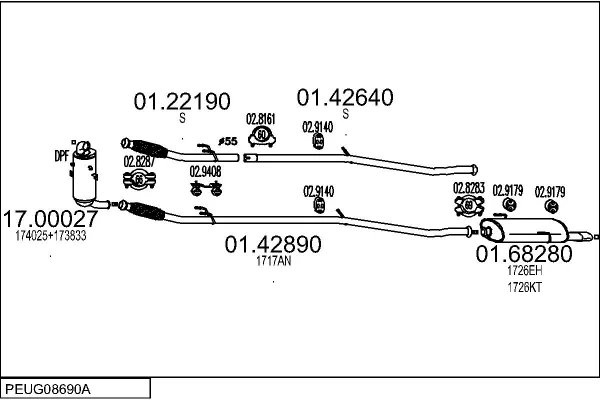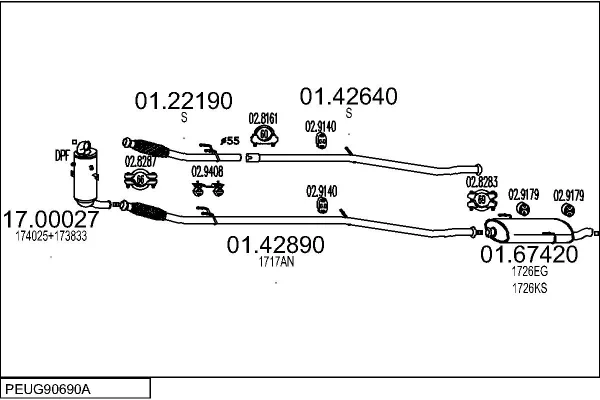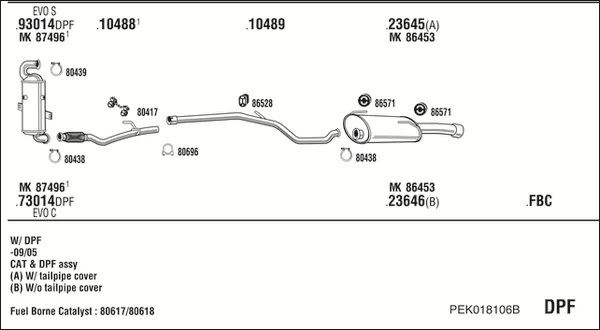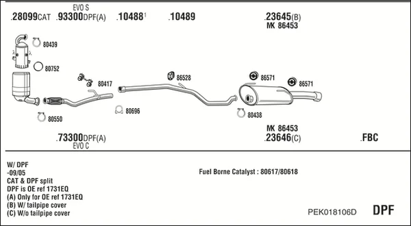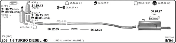 PEUGEOT 206 Šikmá zadní část (2A/C) 1.6 HDi 110 - Výfukový systém - kompletní od 5/2004 do 2/2007, 1560 ccm, 80 kW, 109 hp, 9HY (DV6TED4), 9HZ (DV6TED4), Šikmá zadní část