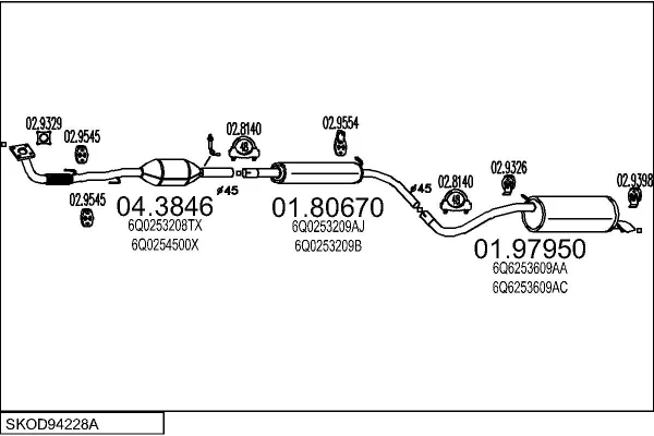 SKODA FABIA I limuzína (6Y3) 1.4 - Výfukový systém - kompletní od 4/2000 do 8/2002, 1397 ccm, 44 kW, 60 hp, AZE, AZF, limuzína