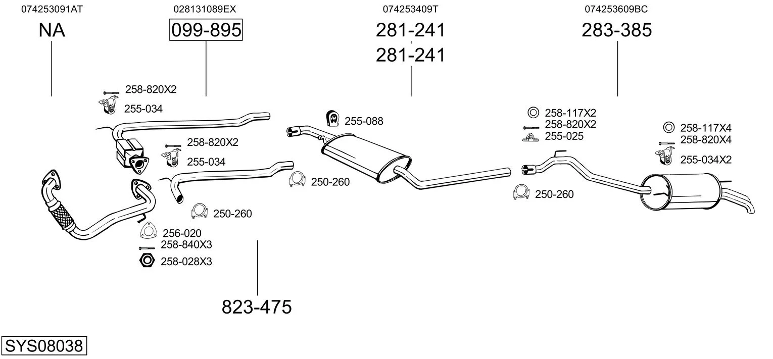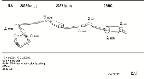 VW TRANSPORTER T4 Krabice (70A, 70H, 7DA, 7DH) 2.5 TDI - Výfukový systém - kompletní od 9/2000 do 4/2003, 2461 ccm, 111 kW, 151 hp, AHY, AXG, Krabice