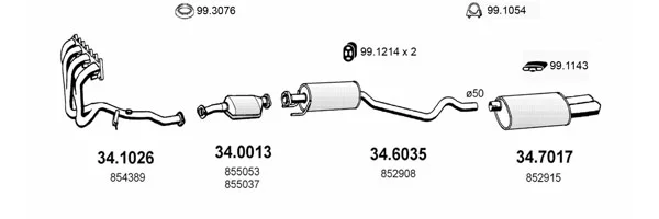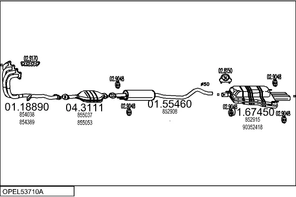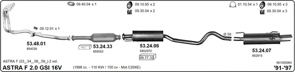 OPEL ASTRA F Šikmá zadní část (T92) 2.0 GSI 16V (F08, M08, F68, M68) - Výfukový systém - kompletní od 9/1991 do 1/1998, 1998 ccm, 110 kW, 150 hp, C 20 XE, Šikmá zadní část