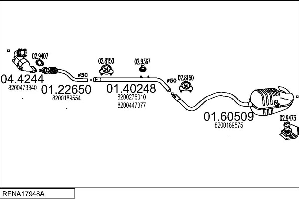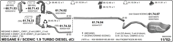 RENAULT MEGANE II (BM0/1_, CM0/1_) 1.9 dCi - Výfukový systém - kompletní od 3/2004 do 8/2006, 1870 ccm, 68 kW, 92 hp, F9Q 808, Šikmá zadní část