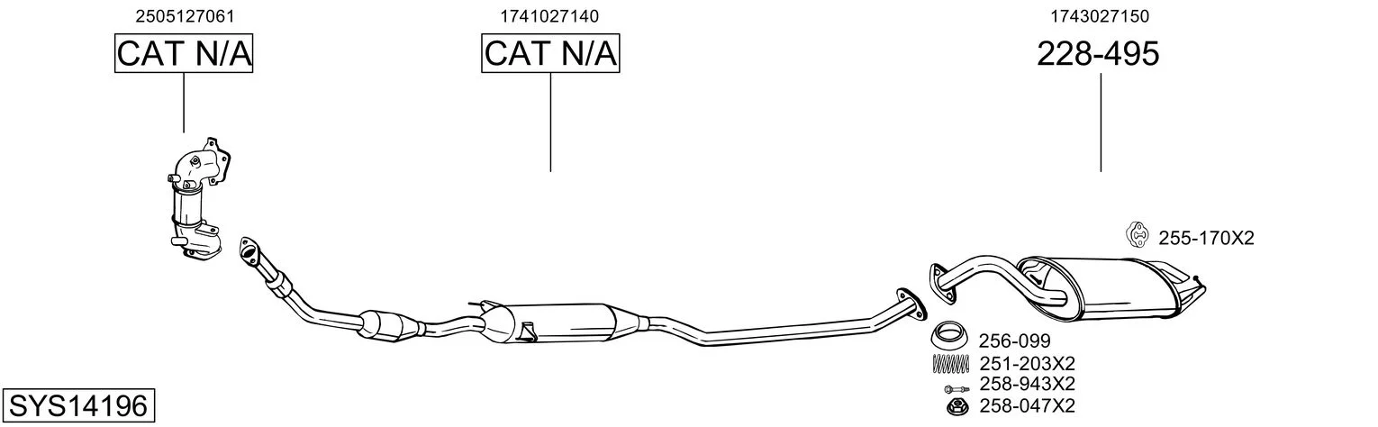 TOYOTA COROLLA kombi (_E12_) 2.0 D-4D (CDE120_, CDE120R) - Výfukový systém - kompletní od 4/2004 do 2/2007, 1995 ccm, 85 kW, 116 hp, 1CD-FTV, kombi