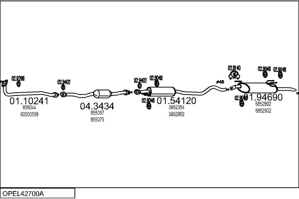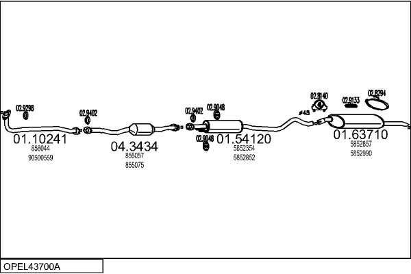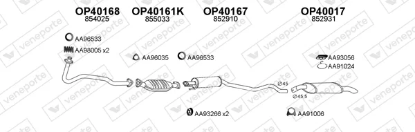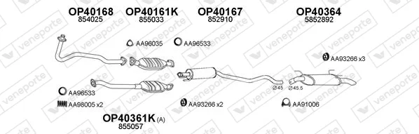 OPEL ASTRA F kombi (T92) 1.4 Si (F35, M35) - Výfukový systém - kompletní od 3/1992 do 1/1998, 1389 ccm, 60 kW, 82 hp, C 14 SE, kombi