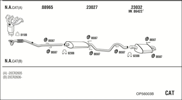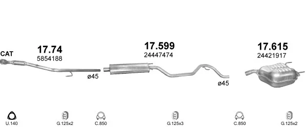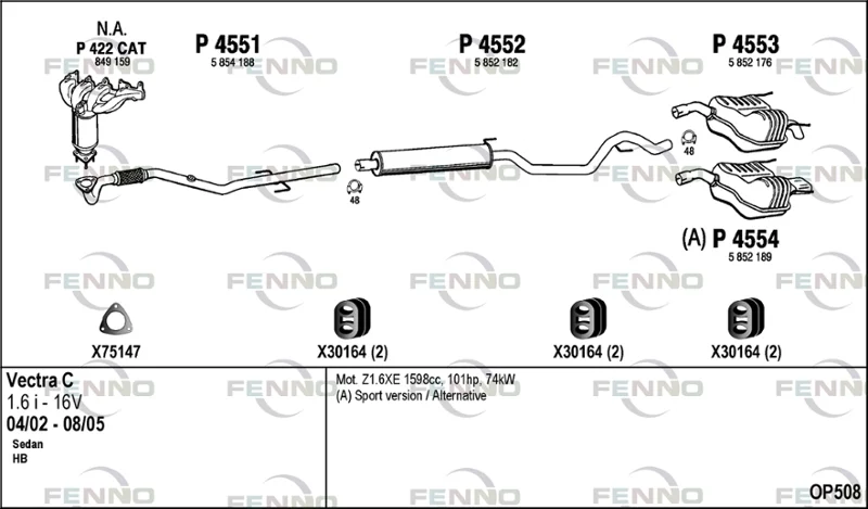 OPEL VECTRA C (Z02) 1.6 16V (F69) - Výfukový systém - kompletní od 4/2002 do 10/2005, 1598 ccm, 74 kW, 100 hp, Z 16 XE, limuzína