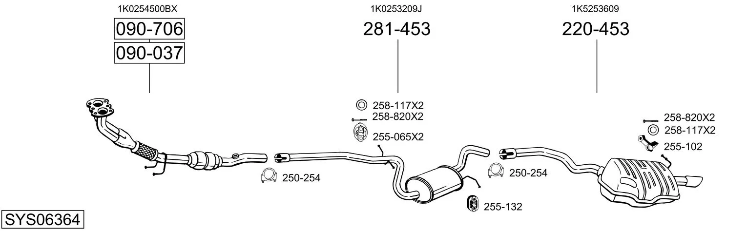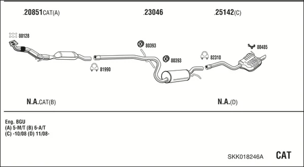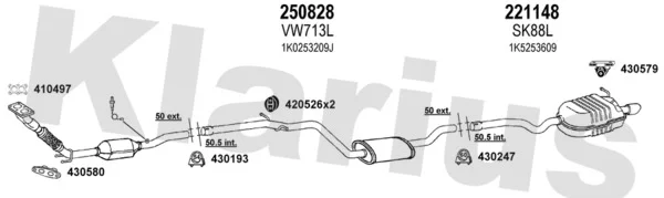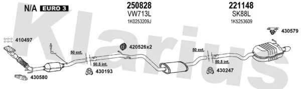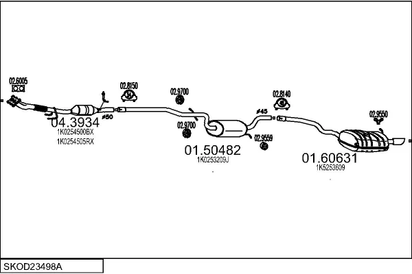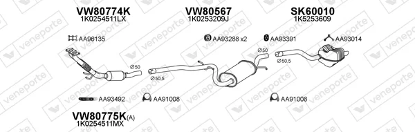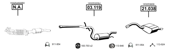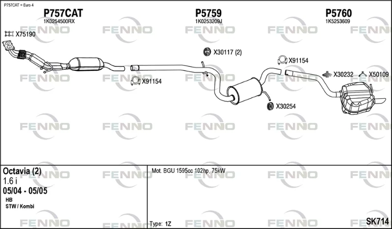 SKODA OCTAVIA II Combi (1Z5) 1.6 - Výfukový systém - kompletní od 9/2004 do 6/2013, 1595 ccm, 75 kW, 102 hp, BGU, BSE, BSF, CCSA, CMXA, kombi