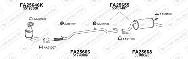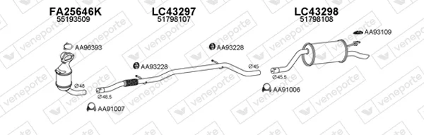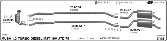 LANCIA MUSA (350_) 1.3 D Multijet (350.AXB11, 350.AXB1A) - Výfukový systém - kompletní od 10/2004 do 9/2012, 1248 ccm, 51 kW, 70 hp, 188 A9.000, velkoprostorová limuzína