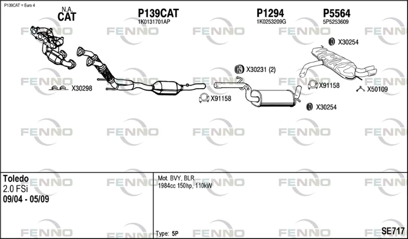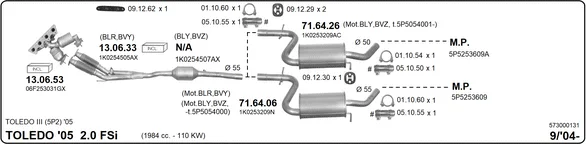 SEAT TOLEDO III (5P2) 2.0 FSI - Výfukový systém - kompletní od 10/2004 do 5/2009, 1984 ccm, 110 kW, 150 hp, BLR, BLY, BVY, BVZ, velkoprostorová limuzína