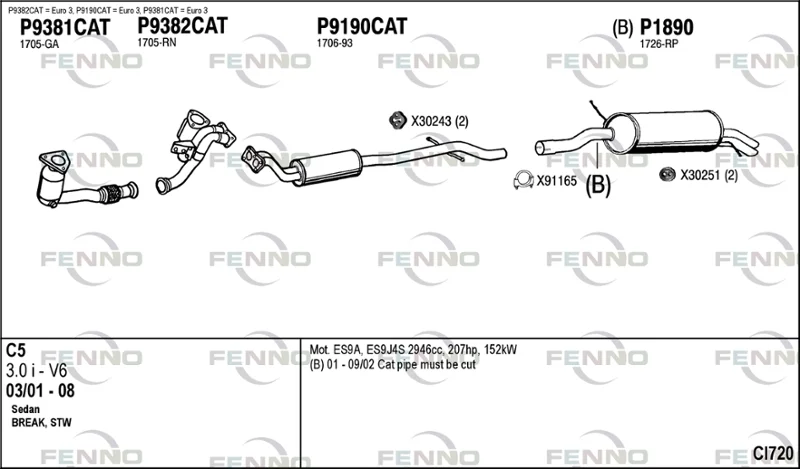 CITROËN C5 II (RC_) 3.0 V6 (RCXFUF) - Výfukový systém - kompletní od 9/2004 do 9/2008, 2946 ccm, 152 kW, 207 hp, XFU (ES9A), XFX (ES9J4S), Šikmá zadní část