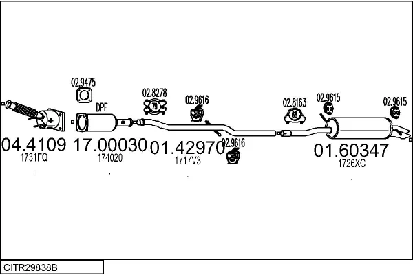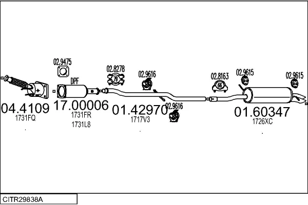 CITROËN C5 II (RC_) 2.2 HDi (RC4HXE) - Výfukový systém - kompletní od 9/2004 do 8/2008, 2179 ccm, 98 kW, 133 hp, 4HX (DW12TED4), Šikmá zadní část