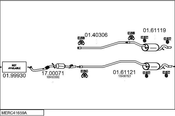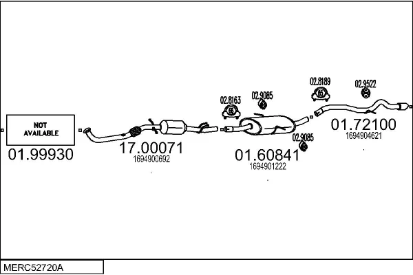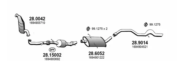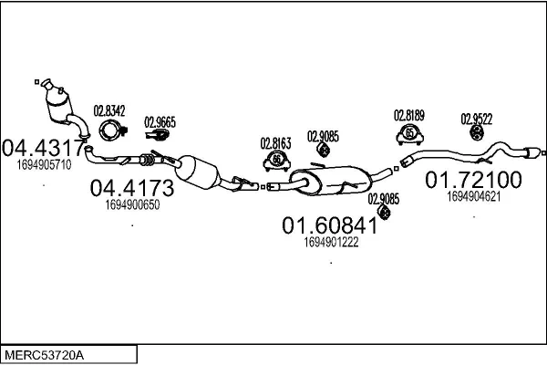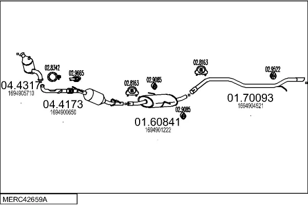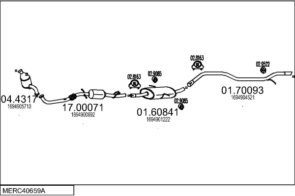 MERCEDES-BENZ B-CLASS Sports Tourer (W245) B 180 CDI (245.207) - Výfukový systém - kompletní od 3/2005 do 11/2011, 1991 ccm, 80 kW, 109 hp, OM 640.940, Šikmá zadní část