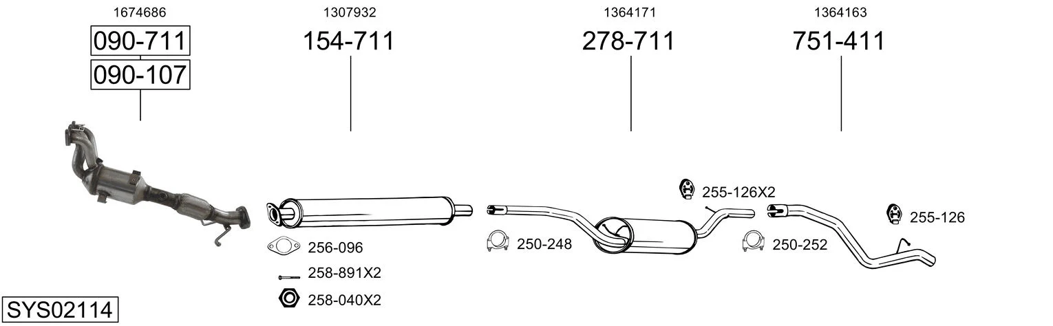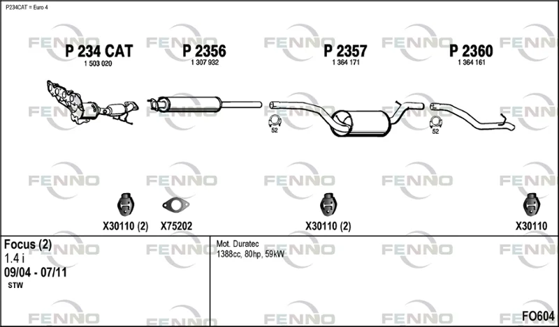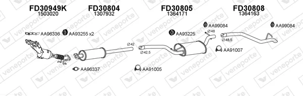 FORD FOCUS II Turnier (DA_, FFS, DS) 1.4 - Výfukový systém - kompletní od 7/2004 do 9/2012, 1388 ccm, 59 kW, 80 hp, ASDA, ASDB, kombi