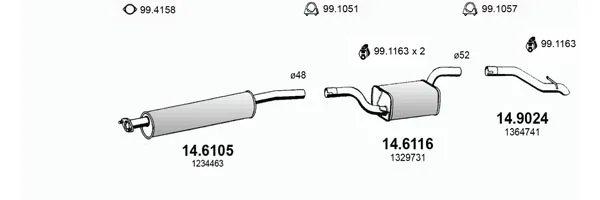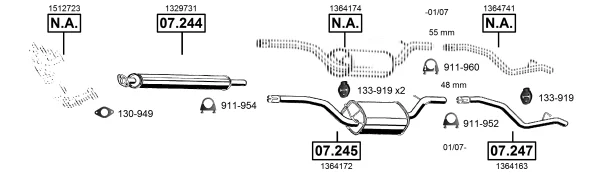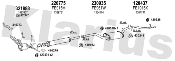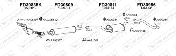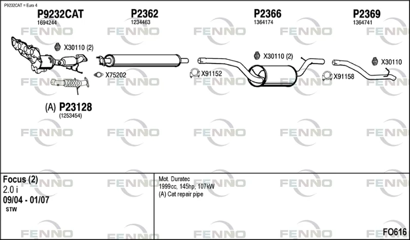 FORD FOCUS II Turnier (DA_, FFS, DS) 2.0 - Výfukový systém - kompletní od 7/2004 do 9/2012, 1999 ccm, 107 kW, 145 hp, AODA, AODB, AODE, SYDA, kombi