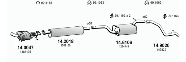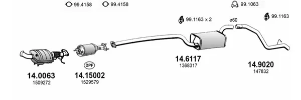 FORD FOCUS II Turnier (DA_, FFS, DS) 2.0 TDCi - Výfukový systém - kompletní od 7/2004 do 9/2012, 1997 ccm, 100 kW, 136 hp, G6DA, G6DB, G6DD, G6DG, kombi