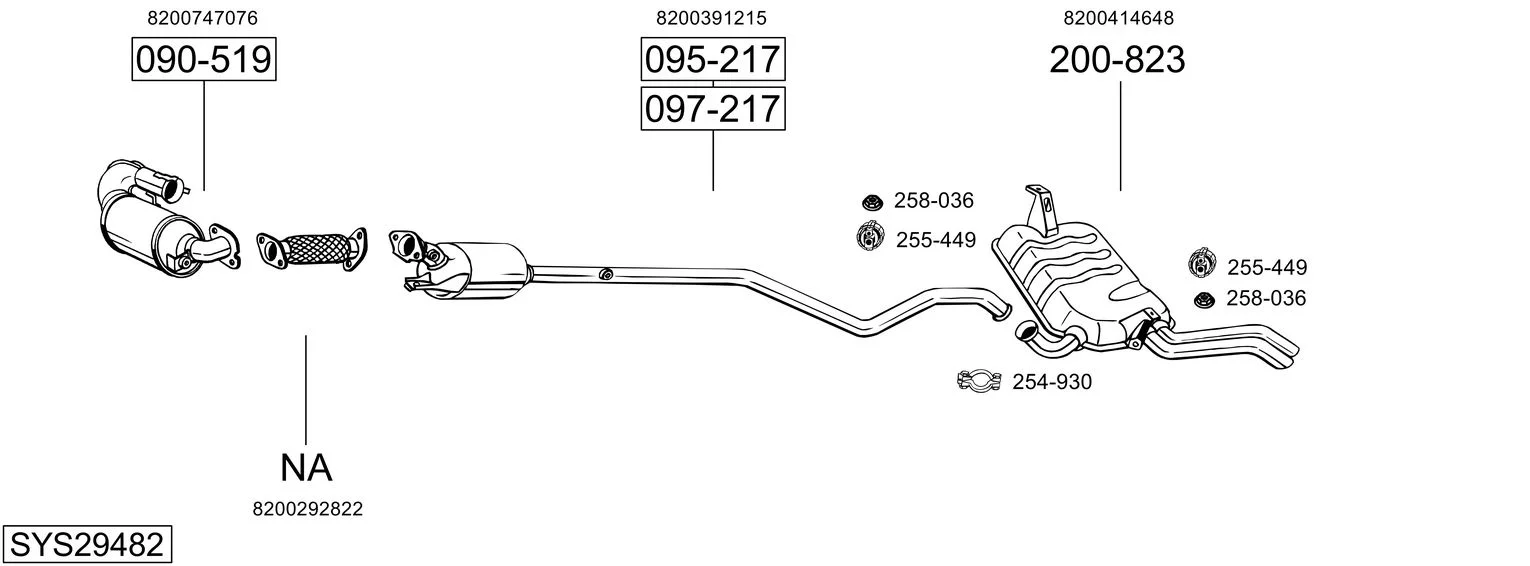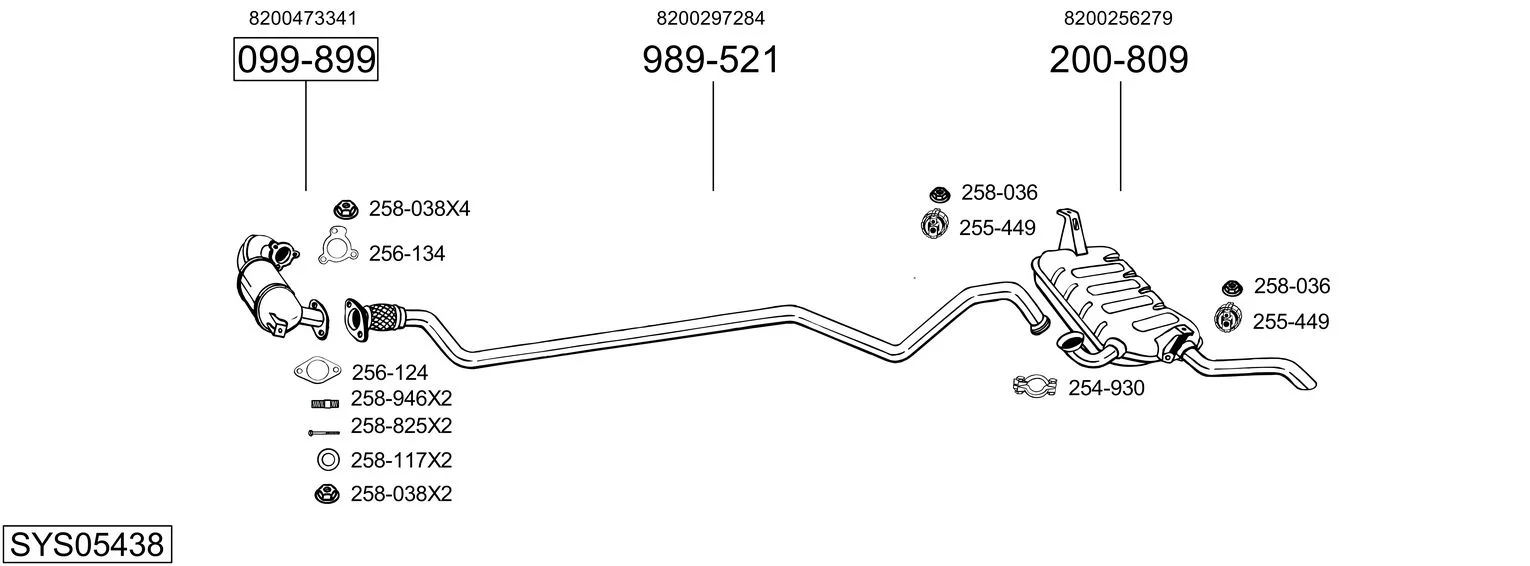 RENAULT LAGUNA II (BG0/1_) 1.9 dCi (BG1A, BG1W, BG0G) - Výfukový systém - kompletní od 1/2005 do 8/2007, 1870 ccm, 81 kW, 110 hp, F9Q 670, F9Q 674, F9Q 758, Šikmá zadní část