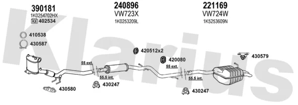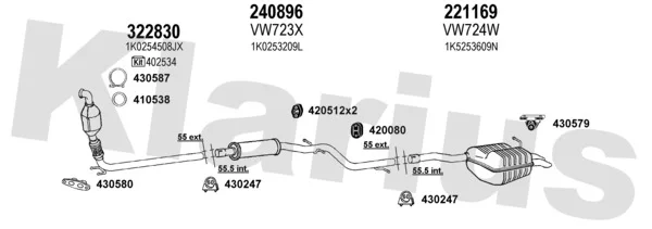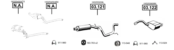 VW JETTA III (1K2) 1.9 TDI - Výfukový systém - kompletní od 8/2005 do 10/2010, 1896 ccm, 77 kW, 105 hp, BKC, BLS, BXE, limuzína