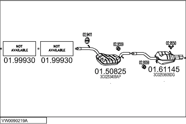 VW PASSAT B6 Variant (3C5) 2.0 FSI - Výfukový systém - kompletní od 8/2005 do 11/2010, 1984 ccm, 110 kW, 150 hp, BLR, BLY, BVY, BVZ, kombi