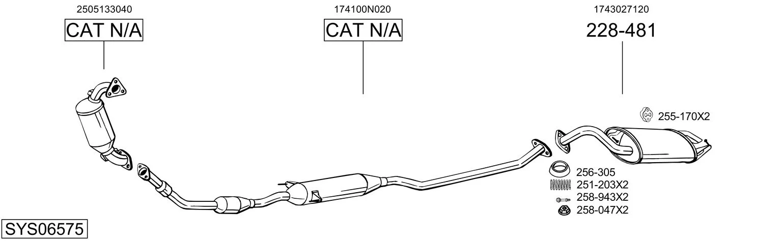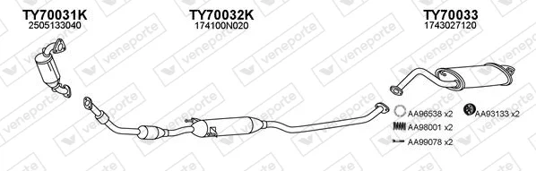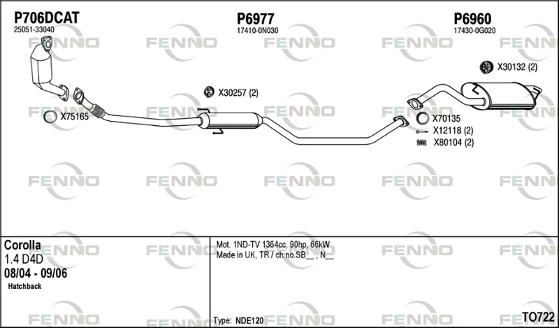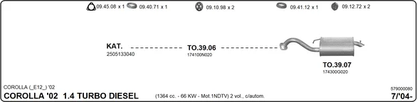 TOYOTA COROLLA (_E12_) 1.4 D (NDE120_, NDE120R) - Výfukový systém - kompletní od 7/2004 do 2/2007, 1364 ccm, 66 kW, 90 hp, 1ND-TV, Šikmá zadní část