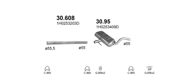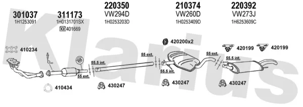 VW GOLF III (1H1) 2.0 GTI 16V - Výfukový systém - kompletní od 8/1992 do 12/1997, 1984 ccm, 110 kW, 150 hp, ABF, Šikmá zadní část
