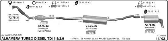 SEAT ALHAMBRA (7V8, 7V9) 1.9 TDI - Výfukový systém - kompletní od 5/2005 do 5/2007, 1896 ccm, 110 kW, 150 hp, BTB, velkoprostorová limuzína