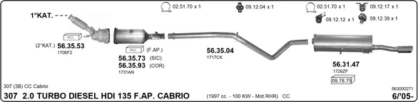 PEUGEOT 307 CC (3B) 2.0 HDi 135 - Výfukový systém - kompletní od 6/2005 do 4/2009, 1997 ccm, 100 kW, 136 hp, RHR (DW10BTED4), Kabriolet