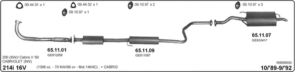 ROVER 200 II Kabriolet (XW) 214 1.4 - Výfukový systém - kompletní od 4/1990 do 9/1992, 1396 ccm, 70 kW, 95 hp, 14 K4C, Kabriolet