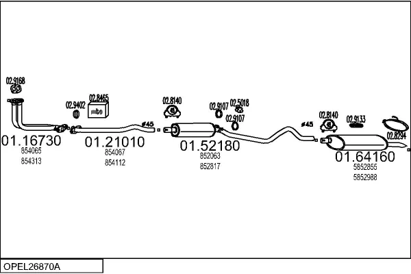 OPEL KADETT E Šikmá zadní část (T85) 1.4 S (C08, C48, D08, D48) - Výfukový systém - kompletní