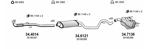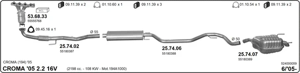 FIAT CROMA (194_) 2.2 16V - Výfukový systém - kompletní od 6/2005 do 12/2010, 2198 ccm, 108 kW, 147 hp, 194 A1.000, kombi