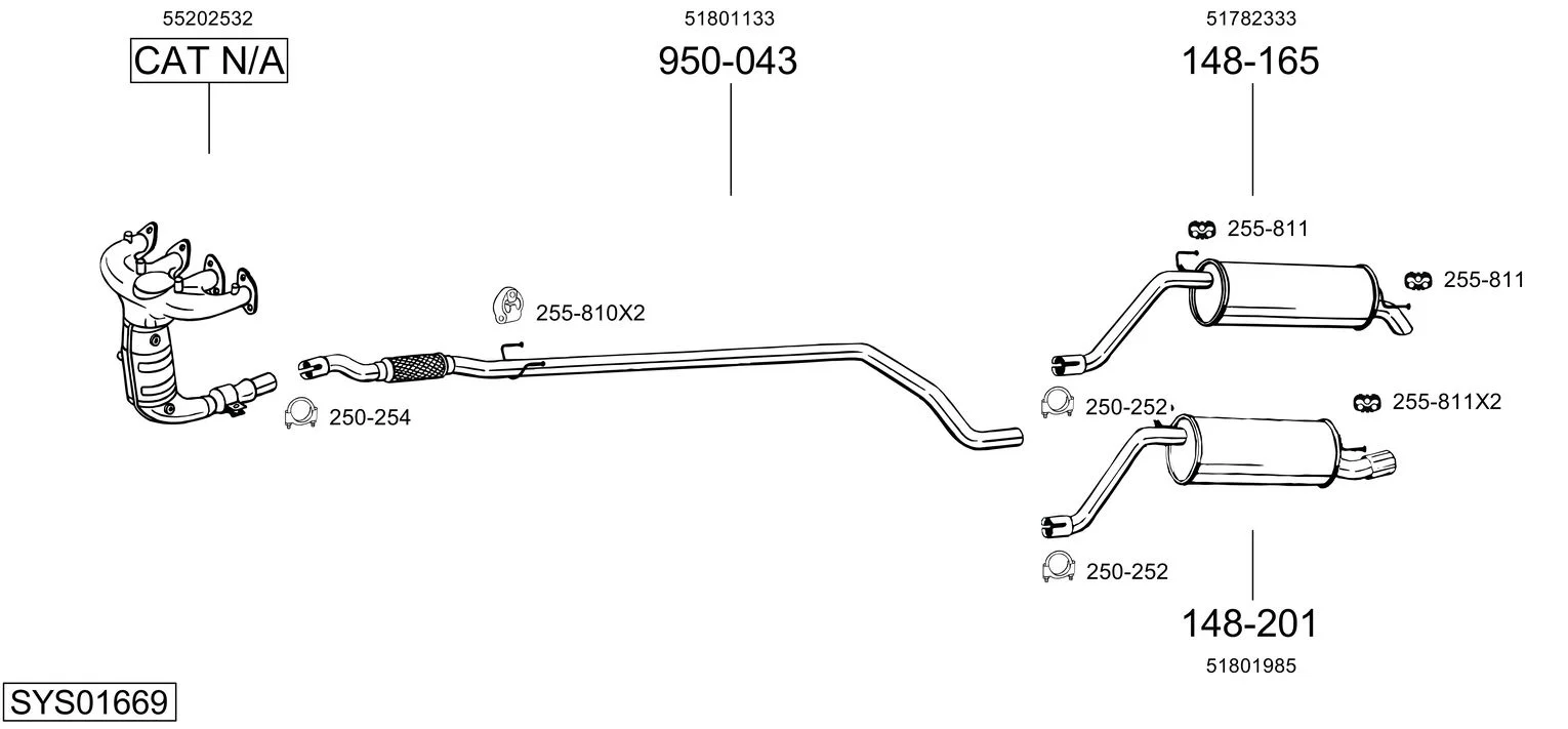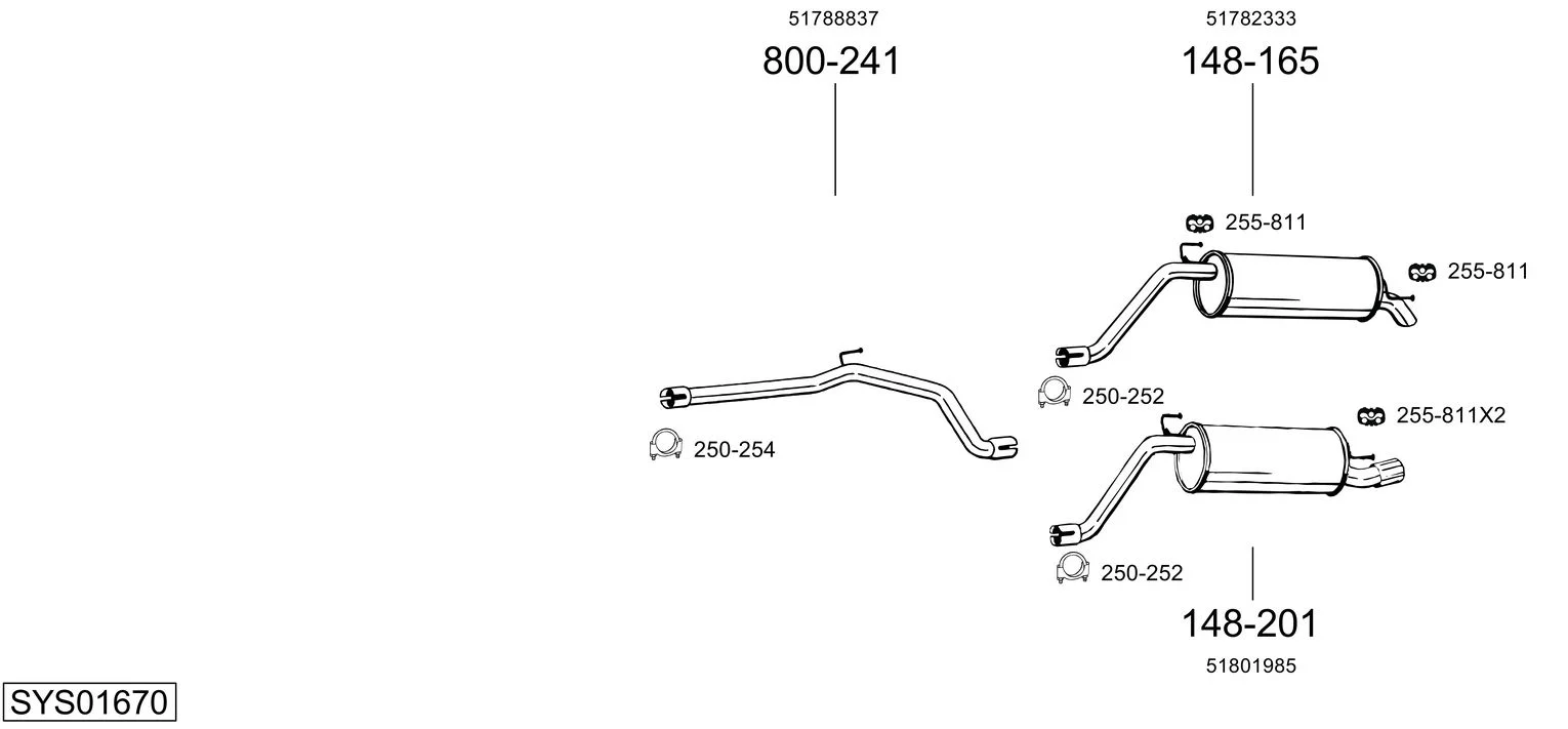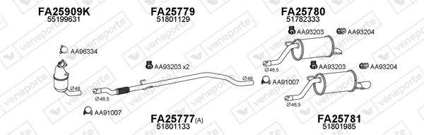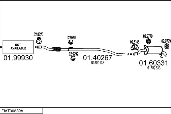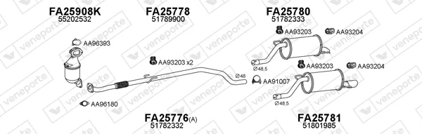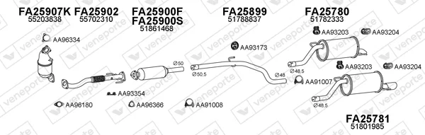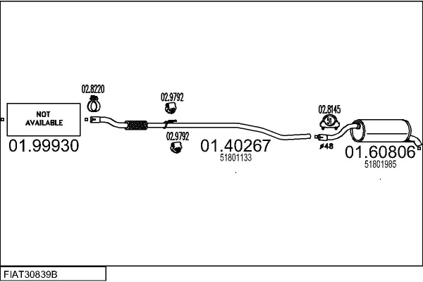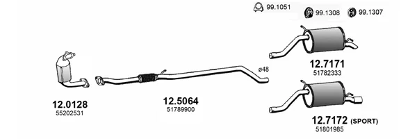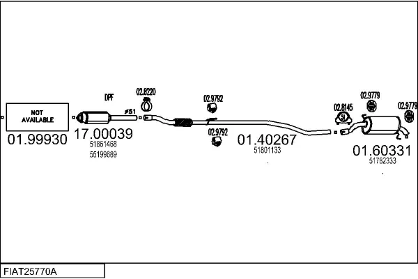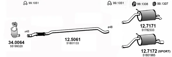 FIAT GRANDE PUNTO (199_) 1.3 D Multijet (199.AXD11, 199.AXD1A, 199.AXD1B,... - Výfukový systém - kompletní od 10/2005 do 12/2010, 1248 ccm, 66 kW, 90 hp, 199 A3.000, Šikmá zadní část