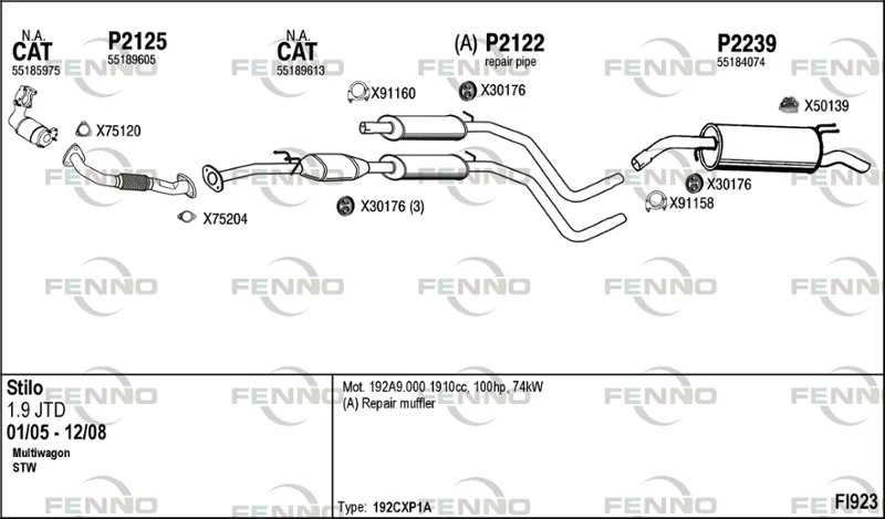 FIAT STILO Multi Wagon (192_) 1.9 D Multijet - Výfukový systém - kompletní od 9/2005 do 8/2008, 1910 ccm, 74 kW, 100 hp, 192 A9.000, kombi