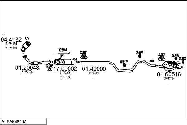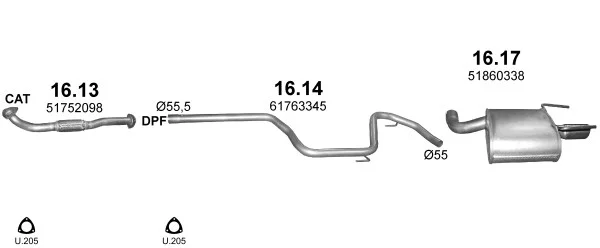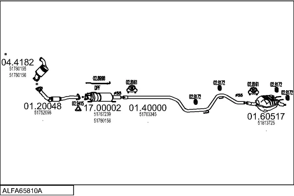 ALFA ROMEO 159 (939_) 1.9 JTDM 8V (939AXE1B) - Výfukový systém - kompletní od 9/2005 do 11/2011, 1910 ccm, 88 kW, 120 hp, 939 A1.000, limuzína