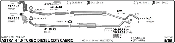 OPEL ASTRA H TwinTop (A04) 1.9 CDTi (L67) - Výfukový systém - kompletní od 9/2005 do 10/2010, 1910 ccm, 110 kW, 150 hp, Z 19 DTH, Kabriolet