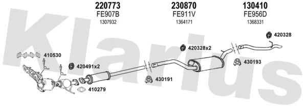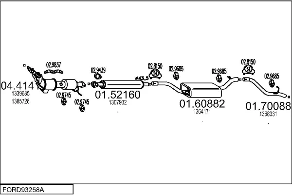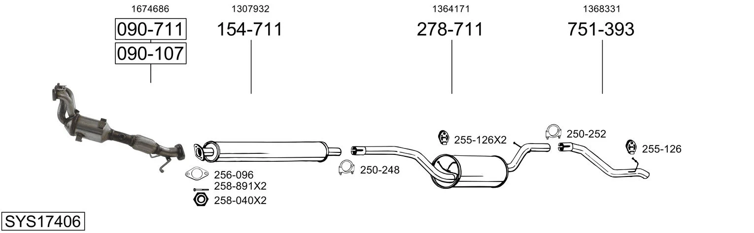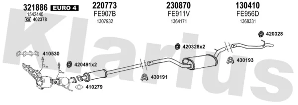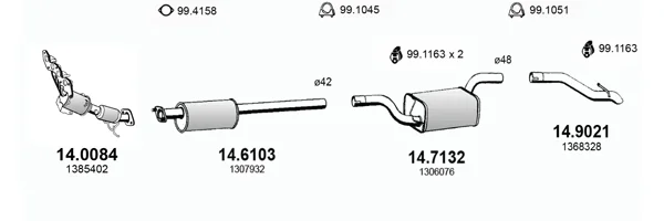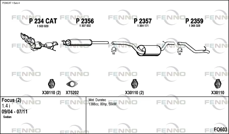 FORD FOCUS II limuzína (DB_, FCH, DH) 1.4 - Výfukový systém - kompletní od 4/2005 do 9/2012, 1388 ccm, 59 kW, 80 hp, ASDA, ASDB, limuzína