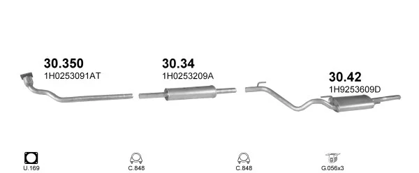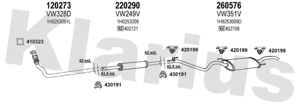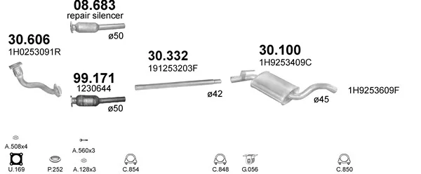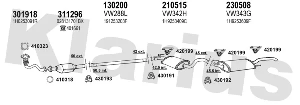 VW GOLF III Variant (1H5) 1.9 D - Výfukový systém - kompletní od 7/1993 do 4/1999, 1896 ccm, 47 kW, 64 hp, 1Y, kombi