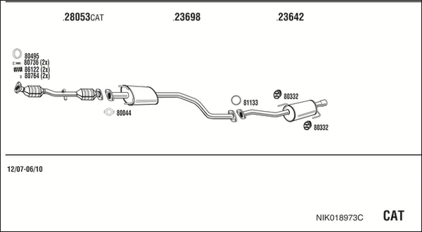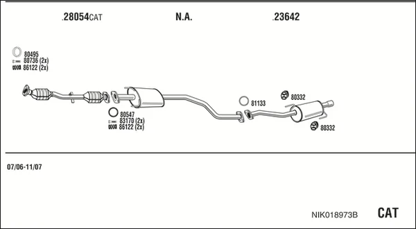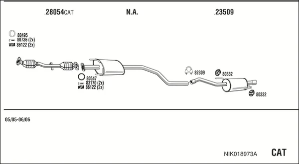 NISSAN MICRA III (K12) 160 SR - Výfukový systém - kompletní od 5/2005 do 6/2010, 1598 ccm, 81 kW, 110 hp, HR16DE, Šikmá zadní část