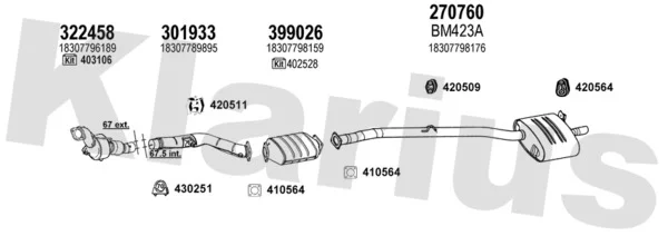 BMW 5 (E60) 520 d - Výfukový systém - kompletní od 9/2005 do 12/2009, 1995 ccm, 120 kW, 163 hp, M47 D20 (204D4), N47 D20 A, N47 D20 C, limuzína