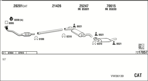 VW GOLF III Cabriolet (1E7) 1.8 - Výfukový systém - kompletní od 7/1993 do 5/1998, 1781 ccm, 66 kW, 90 hp, ABS, ADZ, ANP, Kabriolet