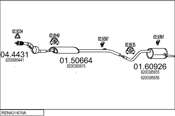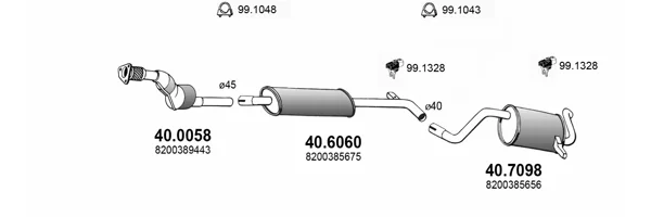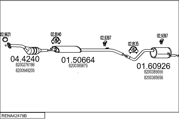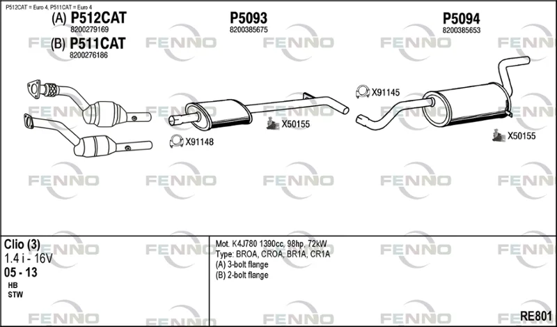 RENAULT CLIO III (BR0/1, CR0/1) 1.4 16V - Výfukový systém - kompletní od 6/2005 do 12/2012, 1390 ccm, 72 kW, 98 hp, K4J 780, Šikmá zadní část