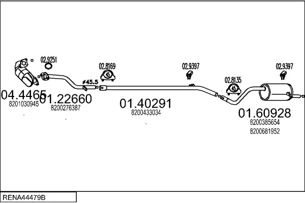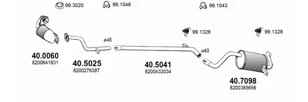 RENAULT CLIO III (BR0/1, CR0/1) 1.5 dCi (BR17, CR17) - Výfukový systém - kompletní od 6/2005 do 12/2012, 1461 ccm, 63 kW, 86 hp, K9K 766, Šikmá zadní část