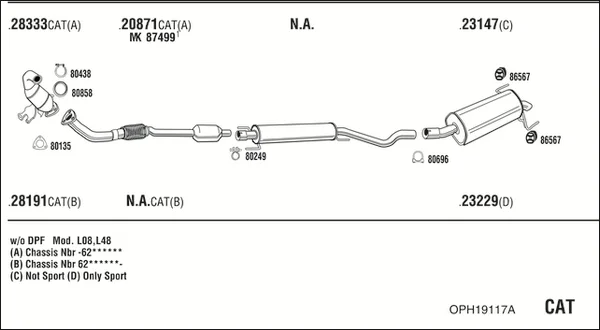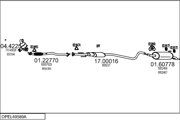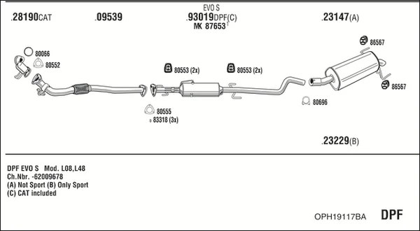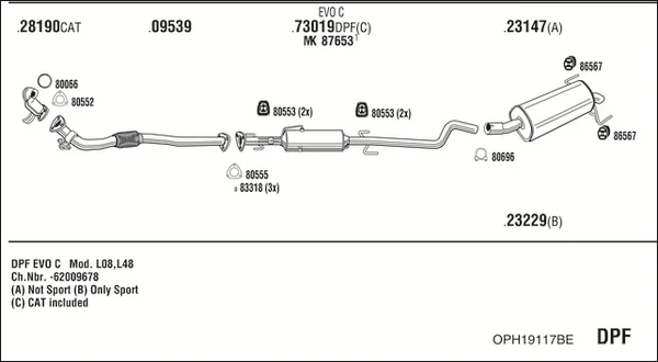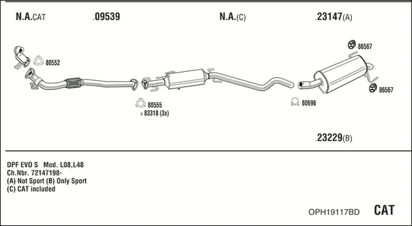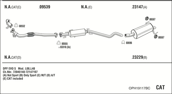 OPEL ASTRA H (A04) 1.9 CDTI (L48) - Výfukový systém - kompletní od 6/2004 do 10/2010, 1910 ccm, 88 kW, 120 hp, Z 19 DT, Šikmá zadní část